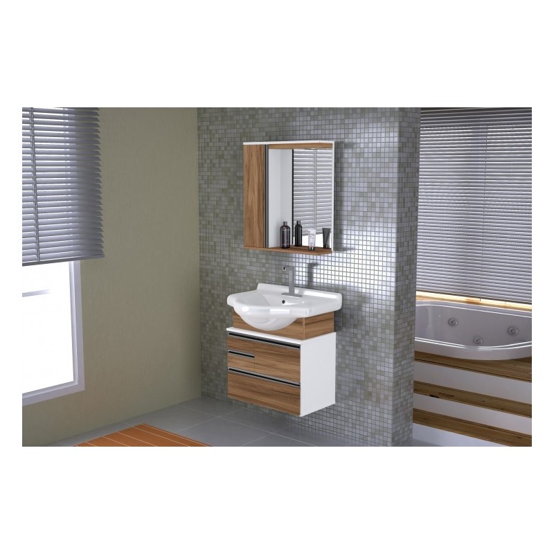 TOUCADOR KIT FIRENZE SUSPENSO COM ESPELHEIRA E PIA 63,5CM NOGAL RORATOOs puxadores em perfil de alumínio, corrediças e dobradiças em metal reforçado que proporcionam a abertura suave e completa das portas e gavetas, mostram mais um diferencial e praticidade deste produto. Possui pia própria em louça com designer robusto e moderno, onde acompanha válvula do tipo click-up.