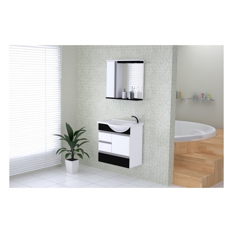 TOUC KIT FLORENCE SUSPENSO COM ESPELHEIRA E PIA 59,5CM PRETO RORATOSuas portas e gavetas em BP madeirado, com cores da tendência, compõem um conjunto de armário, pia e espelheira. Puxadores perfil em alumínio, corrediças e dobradiças de metal reforçado , lâmpadas de Led Bivolt, que proporcionam iluminação uniforme no espelho, tornam o conjunto sofisticado e bonito.