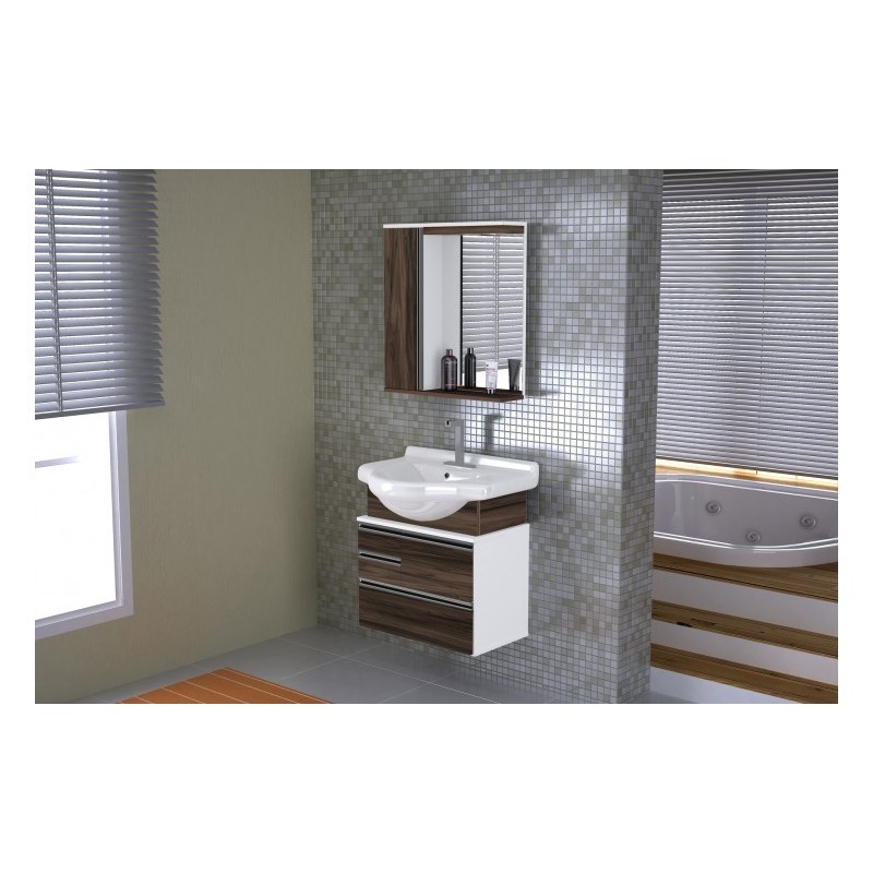 TOUC KIT FIRENZE SUSPENSO COM ESPELHEIRA E PIA 63,5CM CASTAINE RORATOOs puxadores em perfil de alumínio, corrediças e dobradiças em metal reforçado que proporcionam a abertura suave e completa das portas e gavetas, mostram mais um diferencial e praticidade deste produto. Possui pia própria em louça com designer robusto e moderno, onde acompanha válvula do tipo click-up.