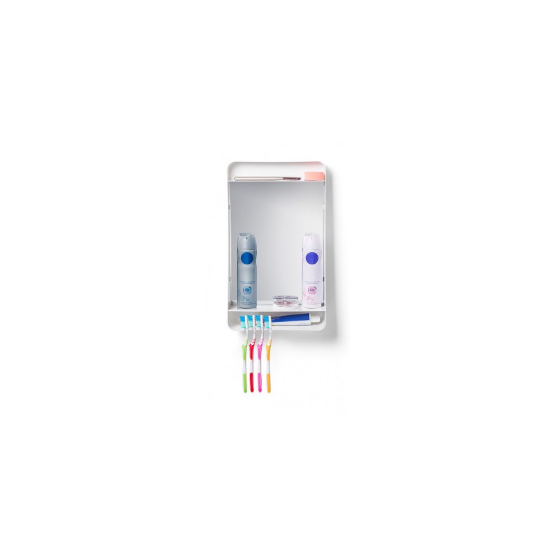 Espelho com compartimentos para banheiro. Plástico (PS de alto impacto). Alta durabilidade e resistência. Segurança de transporte. Espelho ecológico.
