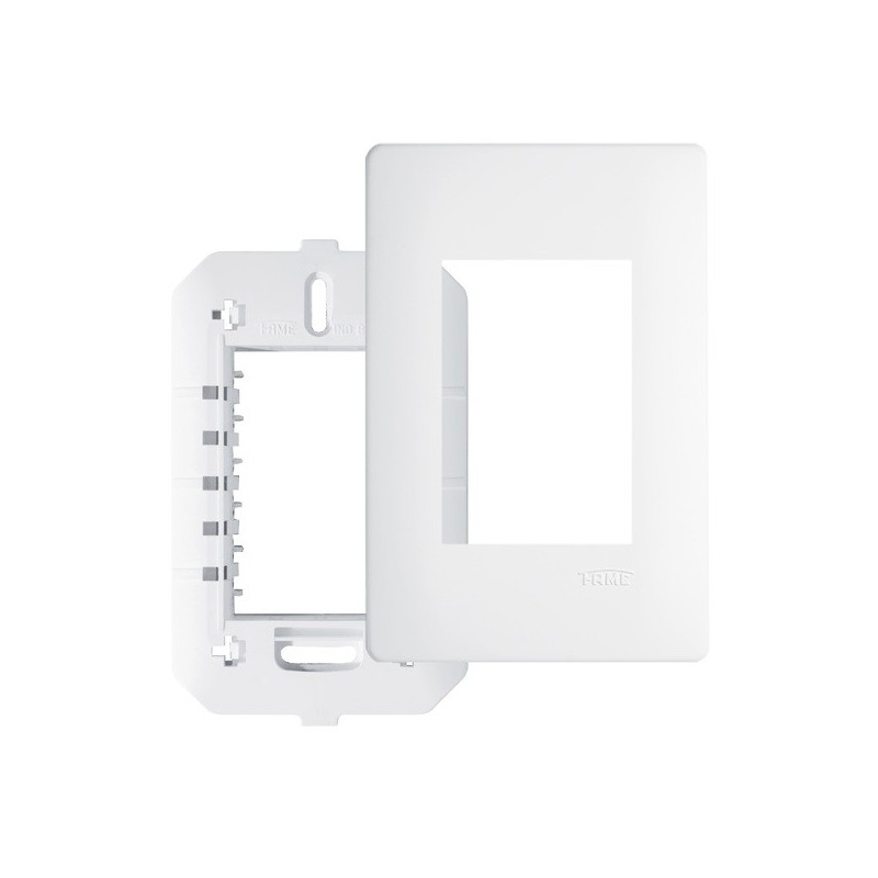 PLACA COM SUPORTE 4X4 PARA 3 MODULOS HORIZONTAIS SERIE HABITAT FAMESérie Habitat - Tudo o que se espera em material elétrico.