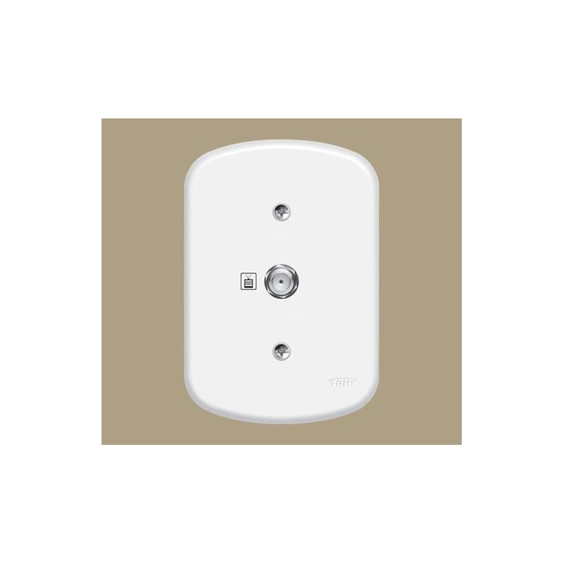TOMADA ANTENA TV PARA CABO COAXIAL 75 COM PLACA SERIE BLANC FAMEO objetivo da tomada para antena de TV é evitar que a fiação fique exposta, devendo ser utilizada como um conector para o aparelho que se deseja ligar.