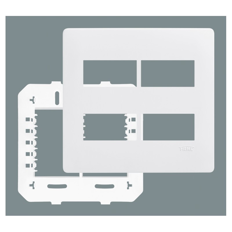 PLACA COM SUPORTE 4X4 PARA 4 MODULOS HORIZONTAIS DISTANCIADOS SERIE HABITAT FAME- Design e Tecnologia.