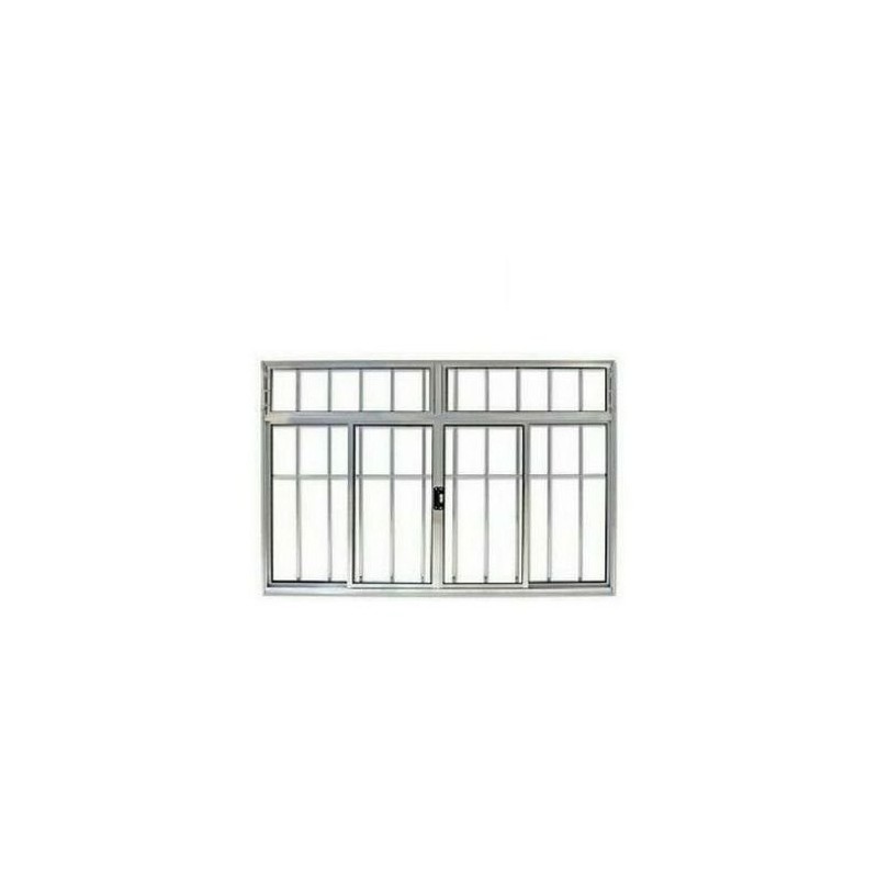 VITRÔ DE CORRER 120X150 4 FOLHAS BANDEIRA E GRADE ALUMINIO BRILHANTE ALIANCECor: Alumínio Brilhante