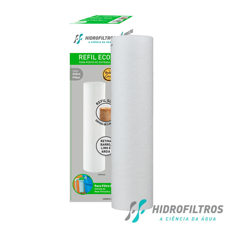 REFIL FILTRO ECO 25 MICRA 9.3/4 HIDROFILTROSIdeal para instalação antes da caixa d’água ou do cavalete.