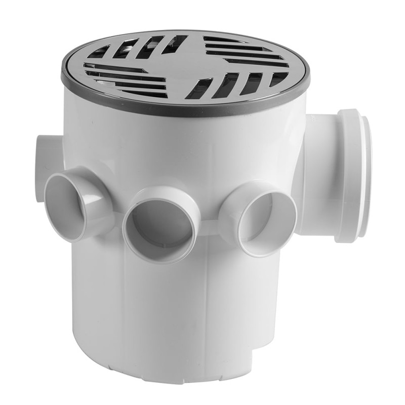 CAIXA SIFONADA 15X18CM COM 7 ENTRADAS VIROLA E GRELHA REDONDA EM ABS CROMADA ASTRACS12/V