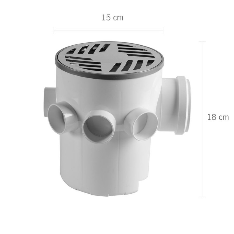 Caixa Sifonada 15cm x 15cm x 18cm, com extensa compatibilidade com grelhas em formatos circulares e quadrados.