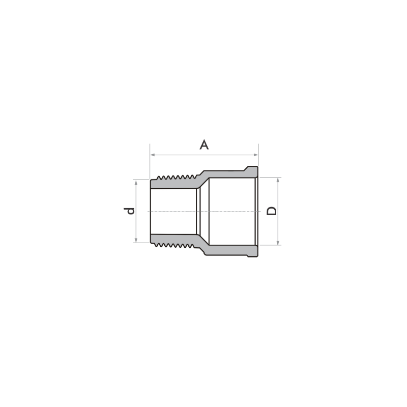 ADAPTADOR SOLDÁVEL CURTO 40 MM FORTLEV| Dimensões (mm x pol) | A | D | d (pol) |