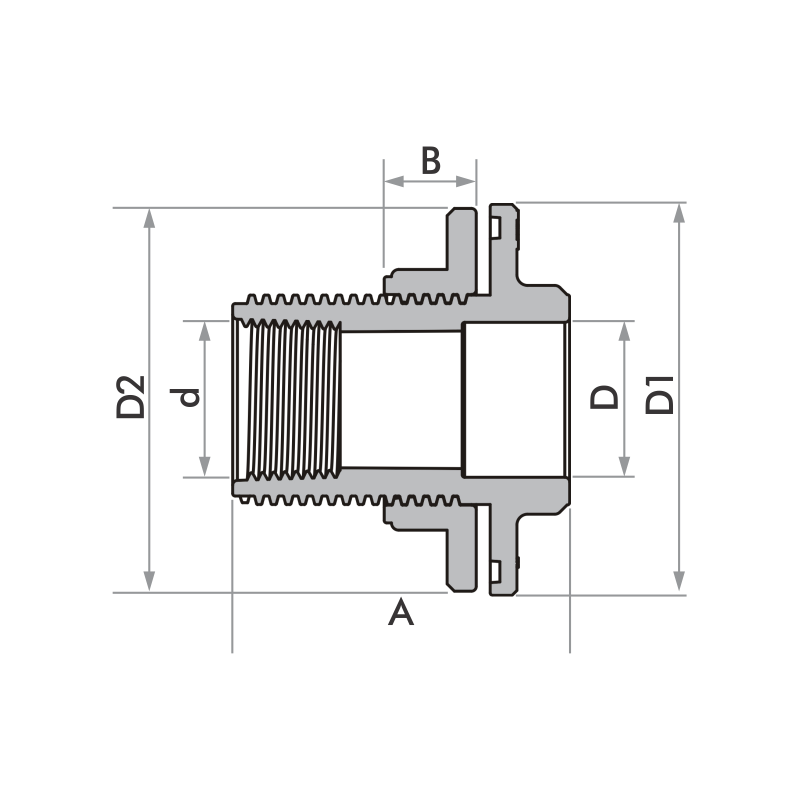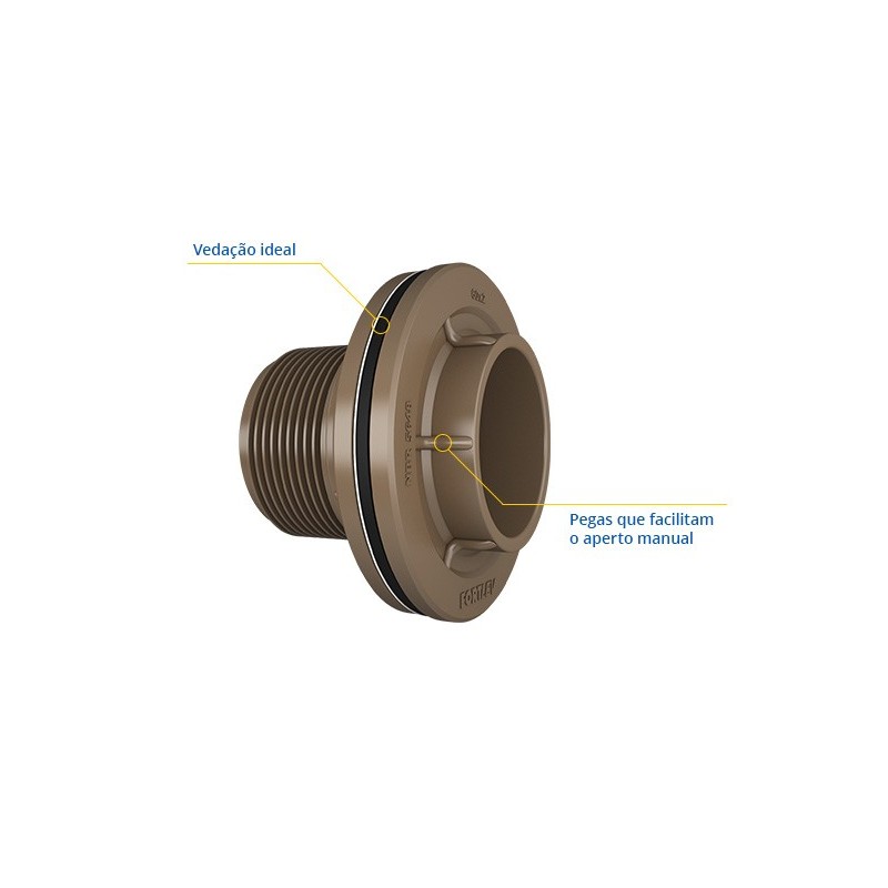 ADAPTADOR SOLDÁVEL 25MM CAIXA D'AGUA FORTLEV| Dimensões (mm x pol) | A | B | D | d (pol) | D1 | D2 |