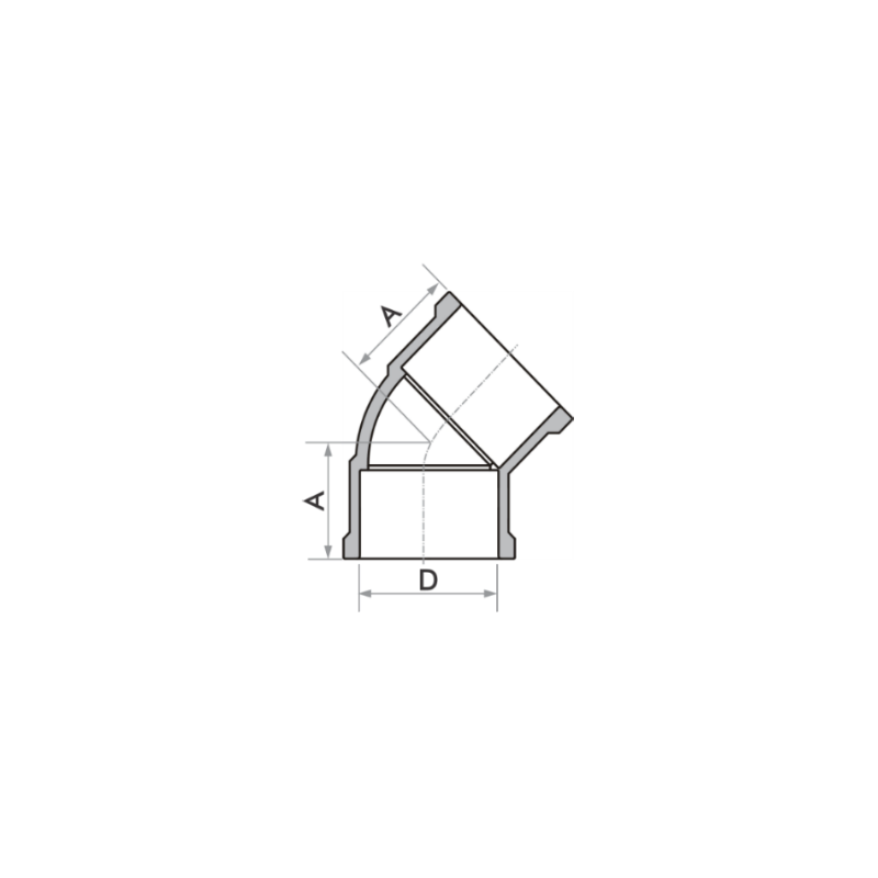 JOELHO SOLDÁVEL 45º 25 MM FORTLEV| Dimensões (mm) | D | A |