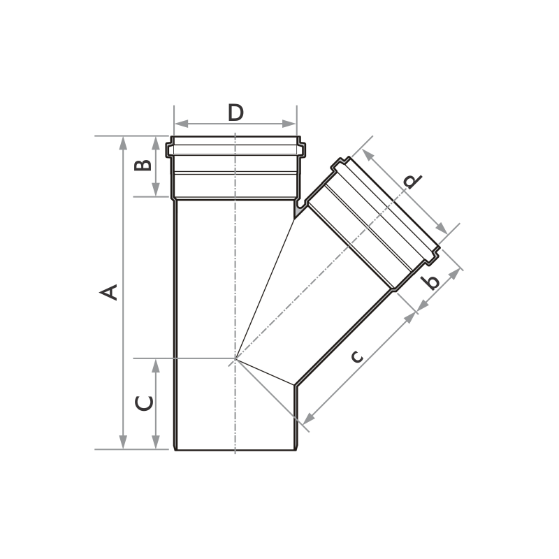JUNÇÃO ESGOTO SN 75X75 MM SIMPLES FORTLEVDimensões (mm) | A | B | b | C | c | D | d |