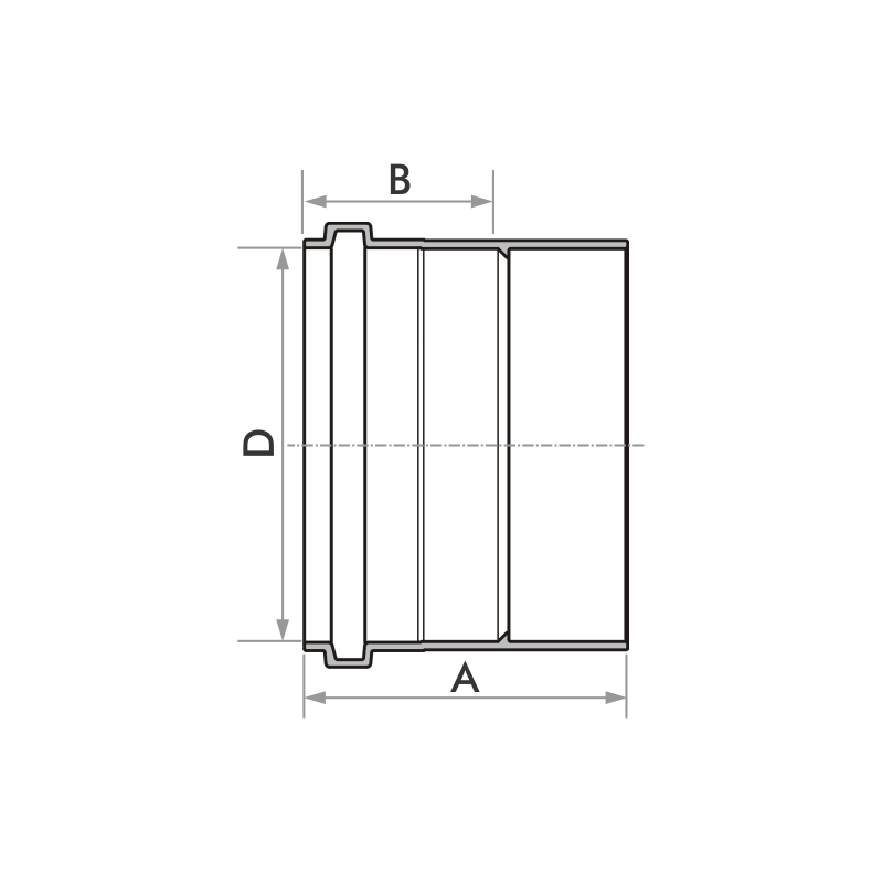 LUVA ESGOTO SIMPLES 50MM FORTLEVDimensões (mm) | A | B | D |