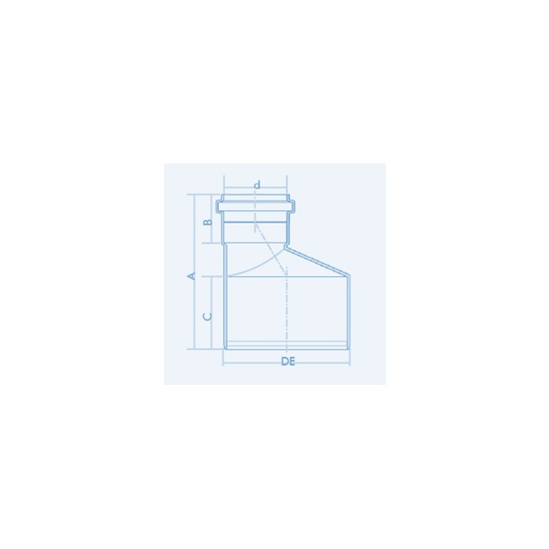 REDUÇÃO EXCÊNTRICA ESGOTO SN 100X75MM FORTLEV| Dimensões (mm) | A | B | D | DE | D |