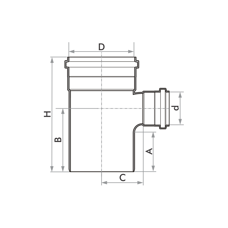 TE ESGOTO SN 100X50MM COM REDUÇÃO FORTLEV| Dimensões (mm) | A | B | C | D | d | H | ||