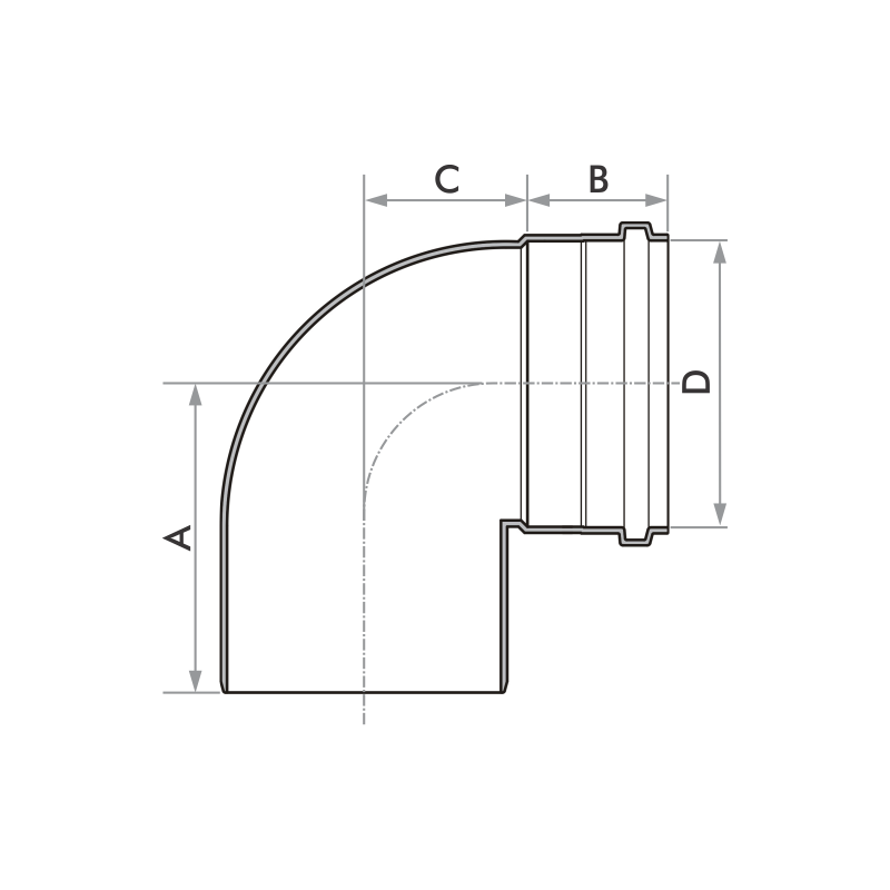 JOELHO ESGOTO SN 90º 40MM FORTLEVDimensões (mm) | A | B | C | D |