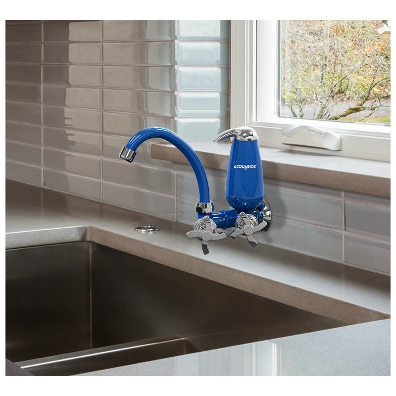 TORNEIRA COM FILTRO PAREDE 1/4 VOLTA BICA MÓVEL QUADRISETA AZUL ACQUABIOS| Local(is) Indicado(s) | Parede |