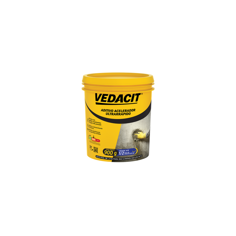 VEDACIT ADITIVO ACELERADOR ULTRARRÁPIDO acelera de forma ultrarrápida a pega do cimento, permitindo o tamponamento instantâneo de vazamentos e infiltrações, e acelera a resistência de argamassas e concreto para rápida liberação.
