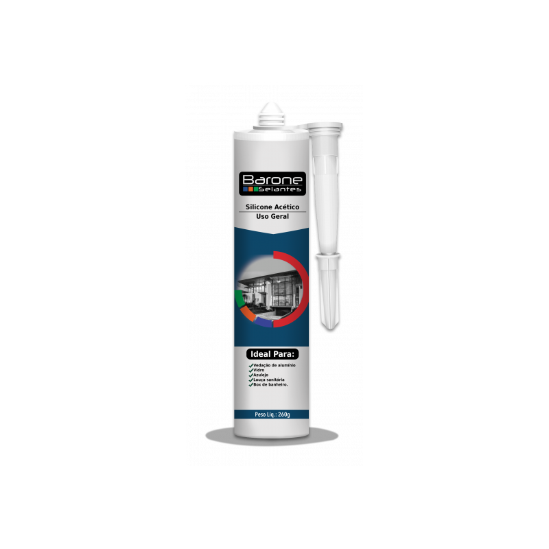 Selante monocomponente de cura acética com fungicida. Produto tixotrópico que cura à temperatura ambiente através da umidade do ar e se torna uma borracha flexível.
