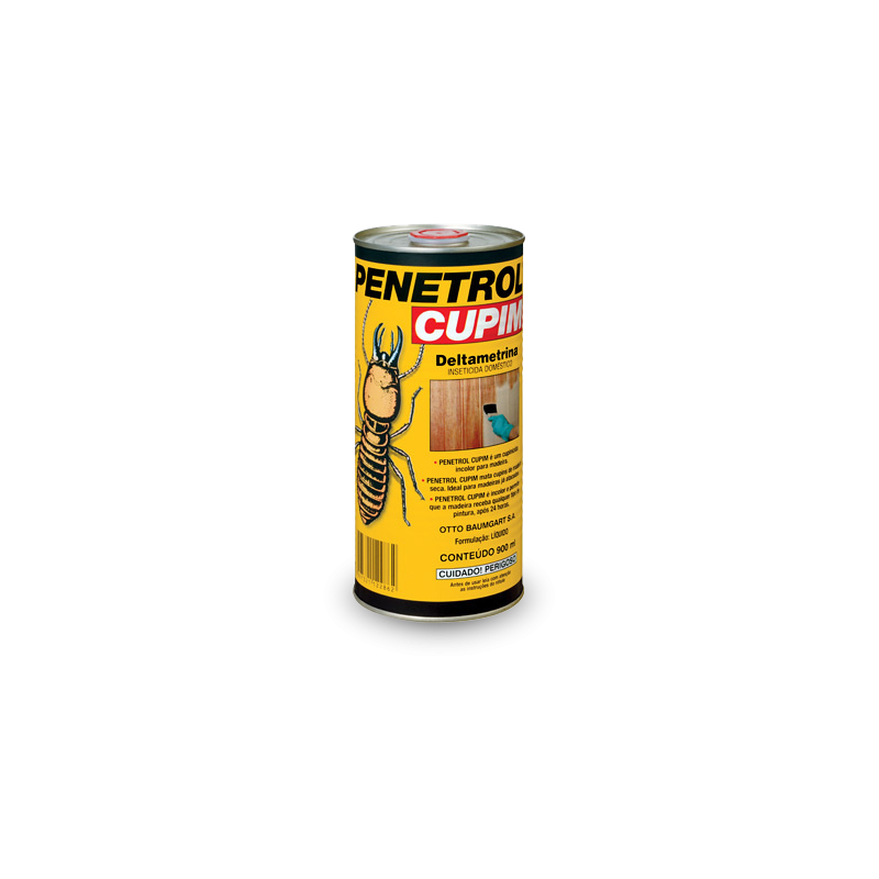 PENETROL CUPIM tem poderosa ação inseticida que protege a madeira seca contra o ataque de cupins. Incolor, permite qualquer tratamento na madeira (verniz, cera ou tinta) 24 horas depois da aplicação.