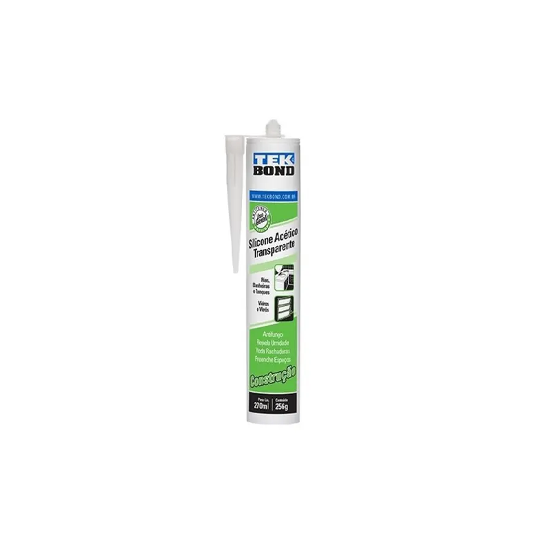 SILICONE ACÉTICO 256G/270ML INCOLOR CONSTRUÇÃO - TEKBONDO Silicone Acético Transparente Construcão é um adesivo selante tixotrópico monocomponente, baixo módulo, antifungo e de cura acética. Sua cura ocorre em temperatura ambiente e na exposição à umidade do ar.