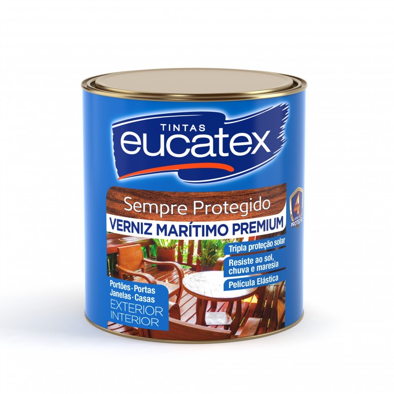 Eucatex Verniz Marítimo é um produto de fácil aplicação, bom alastramento e aderência, secagem rápida e que realça o aspecto natural da madeira, proporcionando acabamentos brilhante transparente ou acetinado. É indicado para proteção e decoração de superfícies internas e externas de madeira, conferindo boa resistência às intempéries.