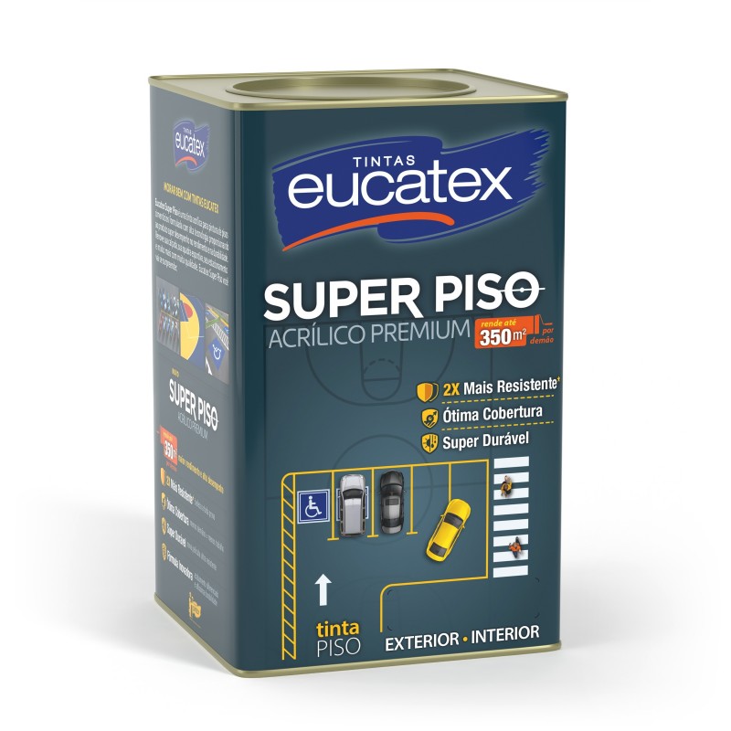 Eucatex Super Piso Acrílico Premium é uma tinta acrílica para pintura de pisos cimenticios formulada com alta tecnologia proporcionando ao produto super desempenho no rendimento e na durabilidade.