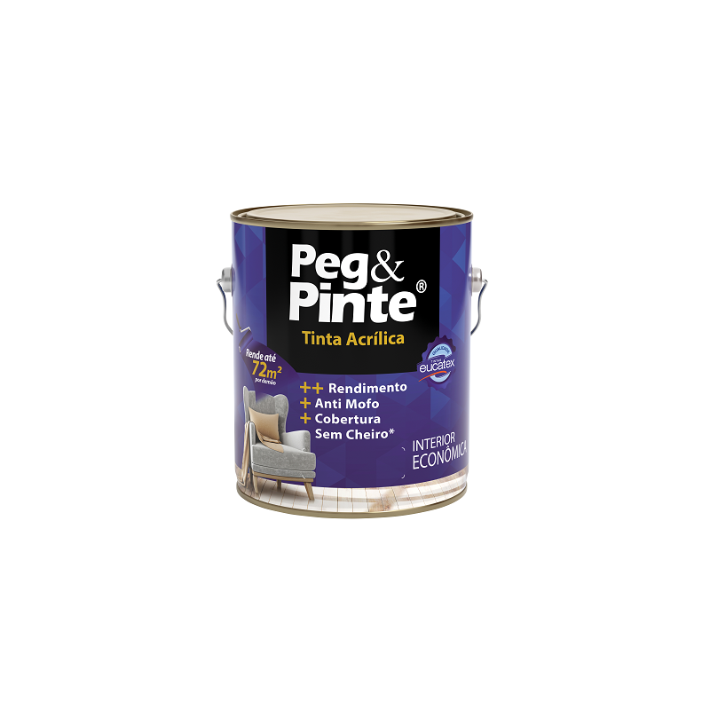 Peg & Pinte Tinta Acrílica Econômica é um produto de boa qualidade, indicado para pinturas de casas e apartamentos em superfícies internas.